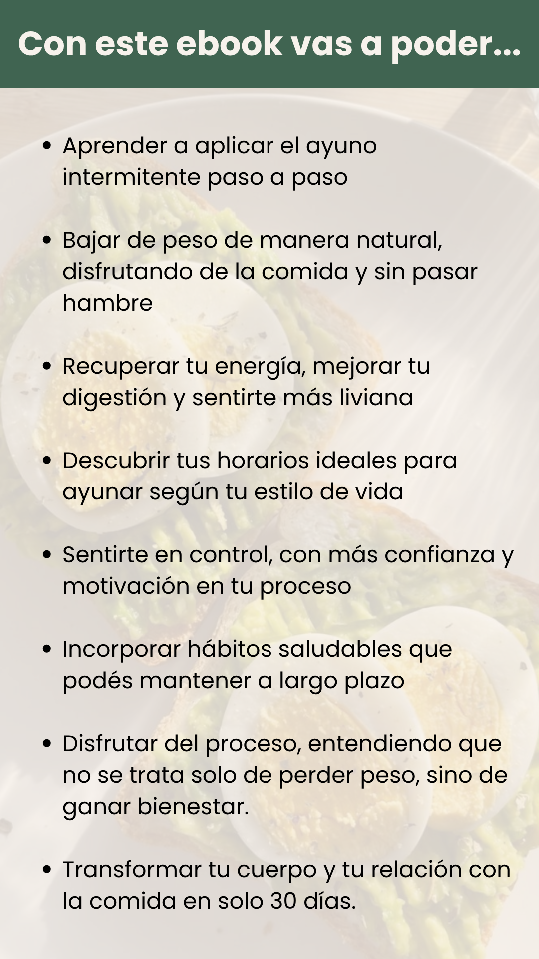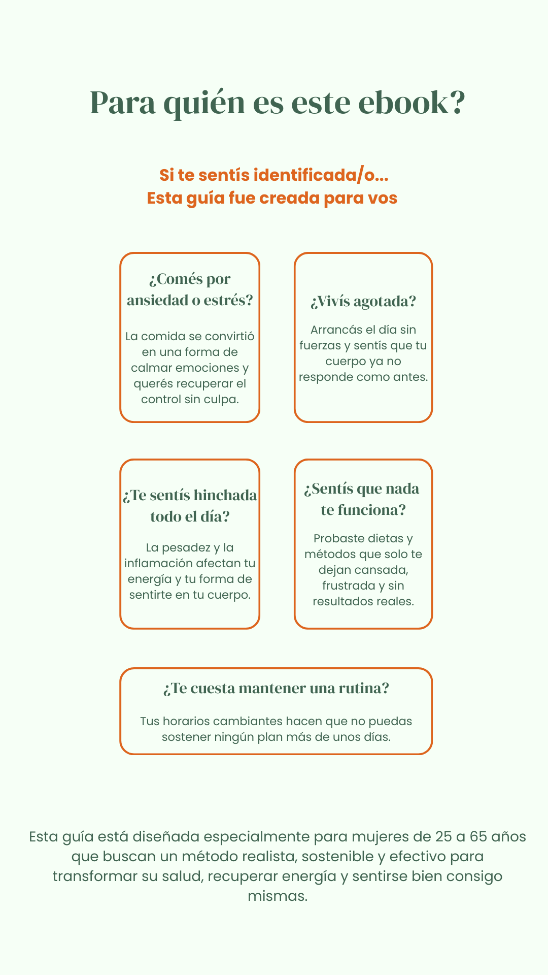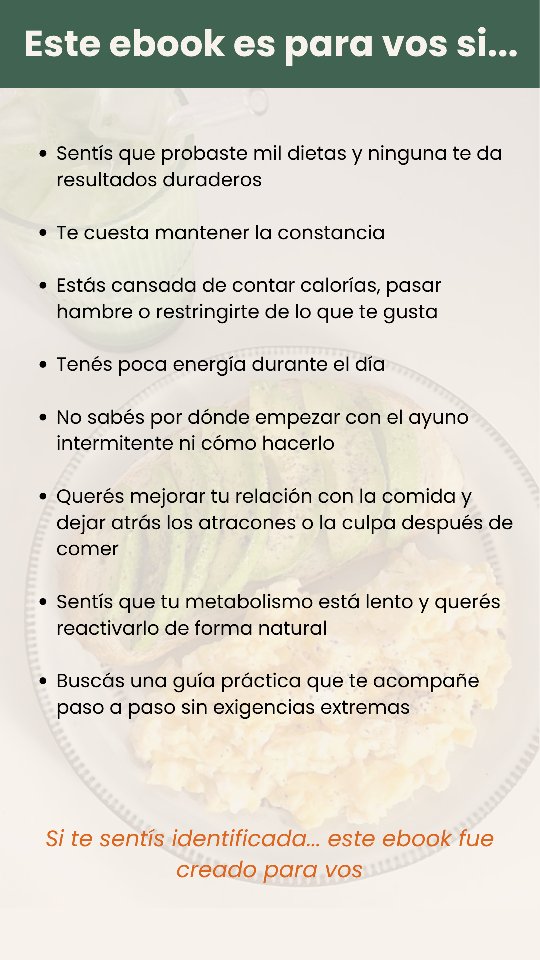 Lo que más me gustó es que el ebook te acompaña paso a paso. No es solo teoría, tiene ejemplos, rutinas y consejos que realmente funcionan. Hoy mi relación con la comida es totalmente diferente: como mejor, duermo bien y me siento más liviana sin hacer dietas restrictivas.